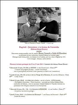 Ronny Someck and Salah Al Hamdani made a promotour through France to promote their book 'Bagdad – Jérusalem, à la lisière de l’incendie' 23th - 27th june 2013.