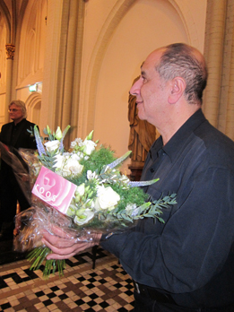 On sunday he was invited for a concert of the choir 'Stem des volks' who sang together with an orchestra three poems of Ronny Someck.