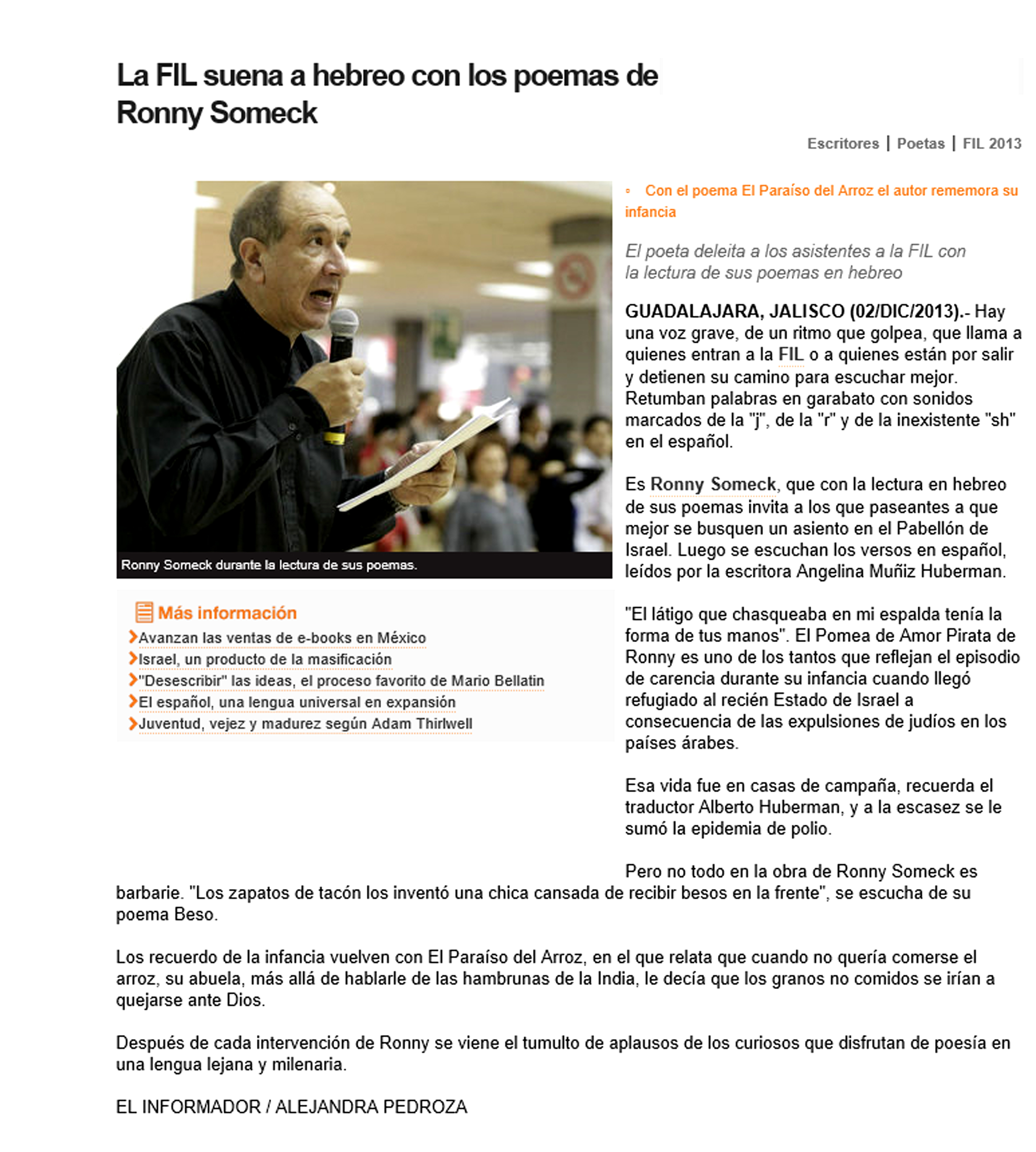 During the first week of December Ronny Someck visited Mexico for the presentation of his Spanish book of Poems 'El Paraíso del Arroz' (Poemas & Dibujos).