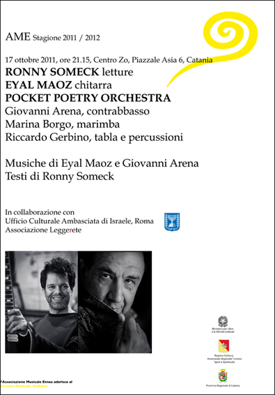 Ronny Someck performed in Catania, Italy with Eyal Maoz and the Pocket Poetry Orchestra 17/10/2010 (see announcement and three pictures).
