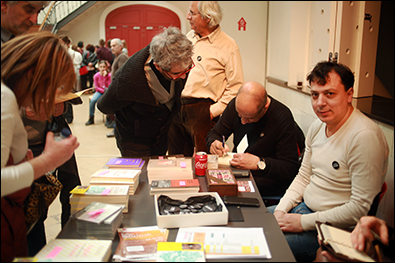 Thierry Eliez, Murielle Szac and Ronny Someck at La Maison de Poésie on 15 september