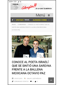 Ronny Someck visited Mexico for the presentation of a new book 'Yo la amo y que el mundo arda' and the opening of the exhibition 'Mas que mil palabras...' (= More than a thousand words...).