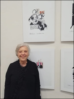 The writer Elena Poniatowska under her portrait made by Ronny Someck