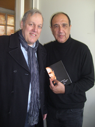 Pic 1 - At the University of Amsterdam. Ronny Someck just received from the director of Azul Press Hennie Jetzes (left) his first copy of 'Blues van de derde zoen'.