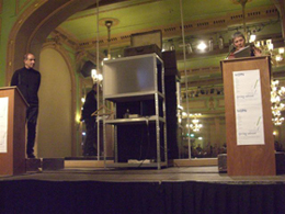 Pic 4 - Ronny Someck listens to the translation of one of his poems, read by Ineke Holzhaus (right)