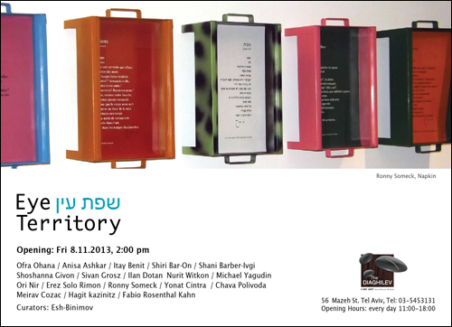 Other artists are Ofra Ohana / Anisa Ashkar / Itay Benit / Shiri Bar-On Shani Barber-Ivgi / Shoshanna Givon / Sivan Gross / Ilan Dotan Nurit Witkon / Michael Yagudin / Ori Nir / Erez Solo Rimon / Yonat Cintra / Chava Polivoda / Meirav Cozac Hagit kazinitz / Fabio Rosenthal Kahn.