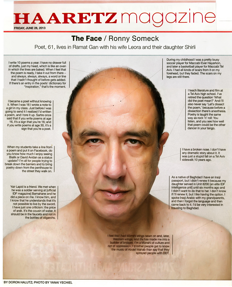 Read the article 'The Face / Ronny Someck' in Haaretz Magazine Friday, june 28, 2013 > here