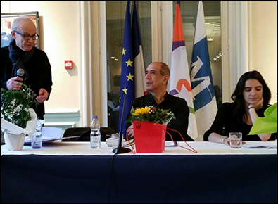 Thierry Eliez, Murielle Szac and Ronny Someck at La Maison de Poésie on 15 september