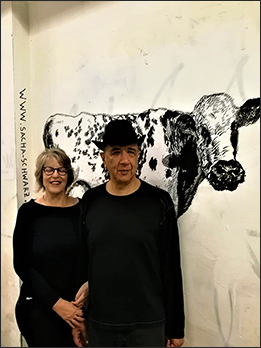 Ronny Someck at the exhibition in honor of the banana made by Andy Warhol