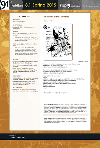 The poem of Ronny Someck Self-Portrait of the Commando with an illustration by him was published in the internet-magazine 91st Meridian.